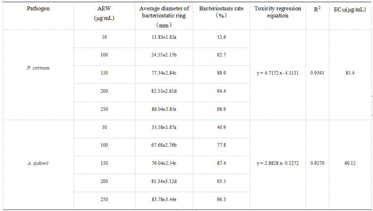 Table 2 The results of toxicity test of AEW to pathogenic fungi