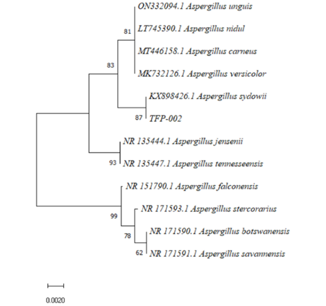 Fig. 4 Phylogenetic tree based on ITS sequences of strain TF2