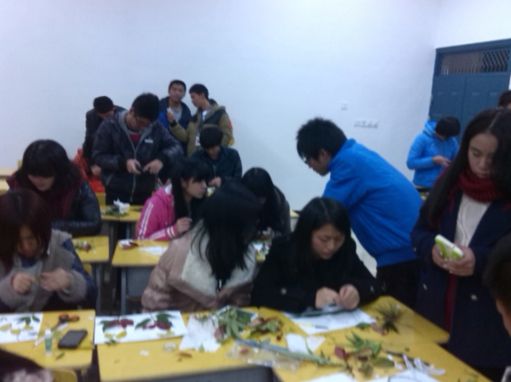 资源环境系社团部树种识别协会于2013年12月3日晚19:30在实训四608,举办了第二届校园树叶拼图大赛,本次活动中,各参赛选手积极参与,以极大的热情投入到此次活动中,制作出各种精美的作品。
