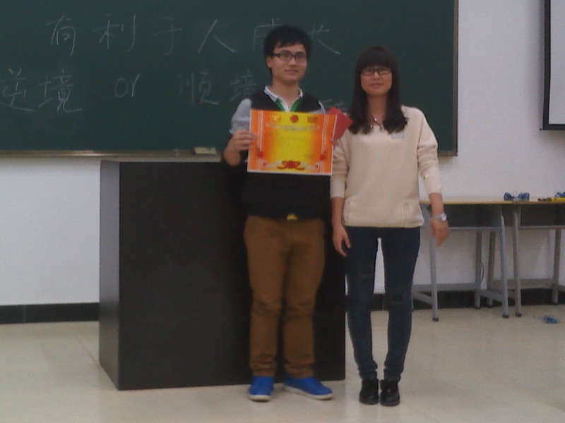 双方围绕“逆境有利于人的成长还是顺境有利于人的成长”展开激烈交锋。面对正方食品1203的引经据点,旁征博引,反方林业1216的辩手们巧用“四两拨千斤”的方法,一如既往用风趣的言语冷静应对,一次次化险为夷。其中,反方三辩吴天福同学,他思路清晰、言语幽默,给笔者和许多观众留下深刻印象,实至名归获得本场“最佳辩手”称号。在激烈的言辞对决后,林业1216在本场比赛中赢得最后胜利,食品1203的选手们则主动与对手握手祝贺,辩手们良好的心态和绅士风度也获得评委与观众的一致肯定。