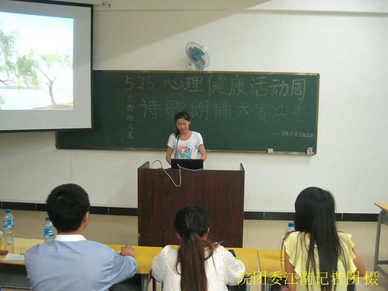 我系在5月23日围绕主题“古典现代美”在实训一602举办了诗歌朗诵大赛初赛,此次活动面向全院学生。经过初赛的角逐,最后取前十名进入最后的决赛。
