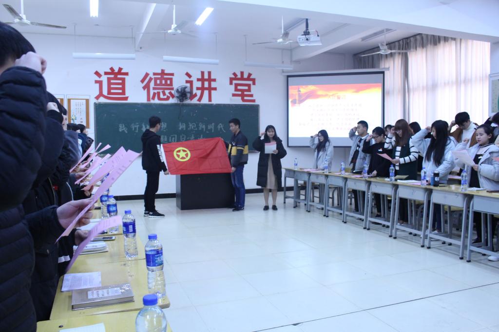 此次团日活动丰富多彩,活动包括主题演讲、观看录像、知识问答环节、小组代表发言、座谈交流等环节,深入学习习近平总书记的重要讲话精神。谷国海书记对此次活动进行了点评,高度肯定了活动的意义,并围绕“四个自信”对同学们进行思政教育,最后在场人员共同合唱共青团团歌,宣读誓词。通过此次活动的开展,同学们更加深刻的了解新时代、新思想的含义,同时对未来在习近平新时代中国特色社会主义思想的指引下,践行新思想,拥抱新时代,增强使命感,责任感有了更明确的方向。