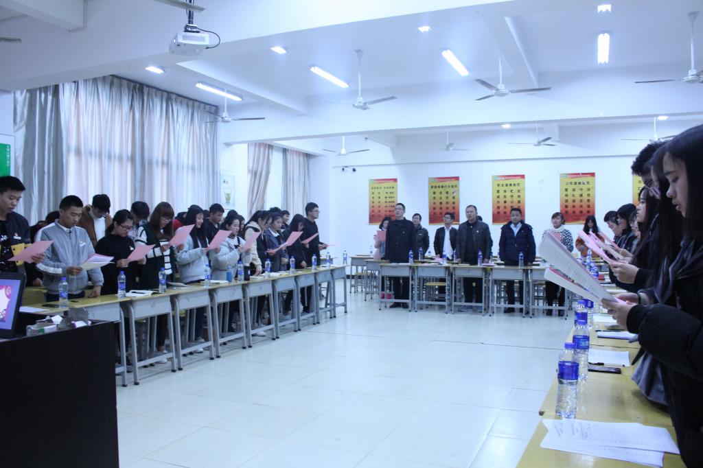 12月19日15点,由林业职业技术学院团委主办,林学系团总支、林学系食品1609班团支部承办的“践行新思想,拥抱新时代”主题团日活动在实训四310拉开帷幕, 南平市团市委谷国海书记、院团委副书记李霞老师、林学系辅导员以及各系主席团成员、组织部负责人等到场参会。