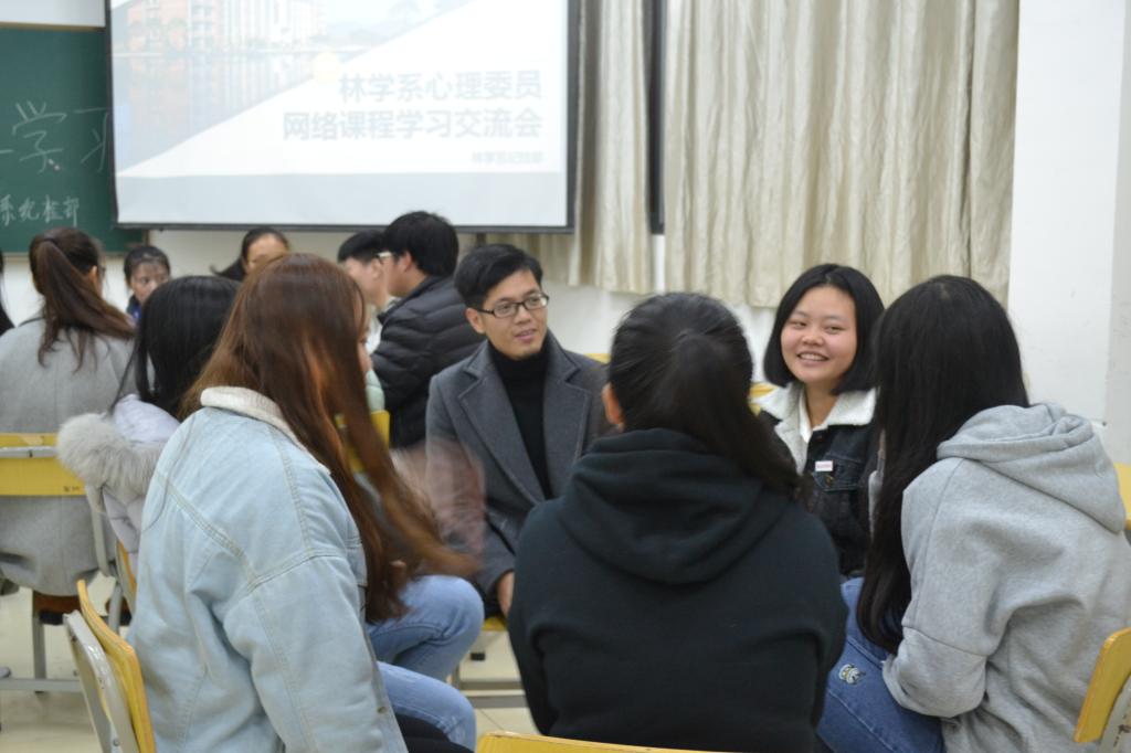 2018年1月2日,由林学系团总支、学生分会主办,林学系纪检部承办的心理委员网络课程学习交流会于实训四312展开。本次交流会很荣幸的邀请到了心理咨询中心的陈红英老师,系部辅导员王梦妮、罗勇、吴慧敏以及各班级心理委员积极参与。