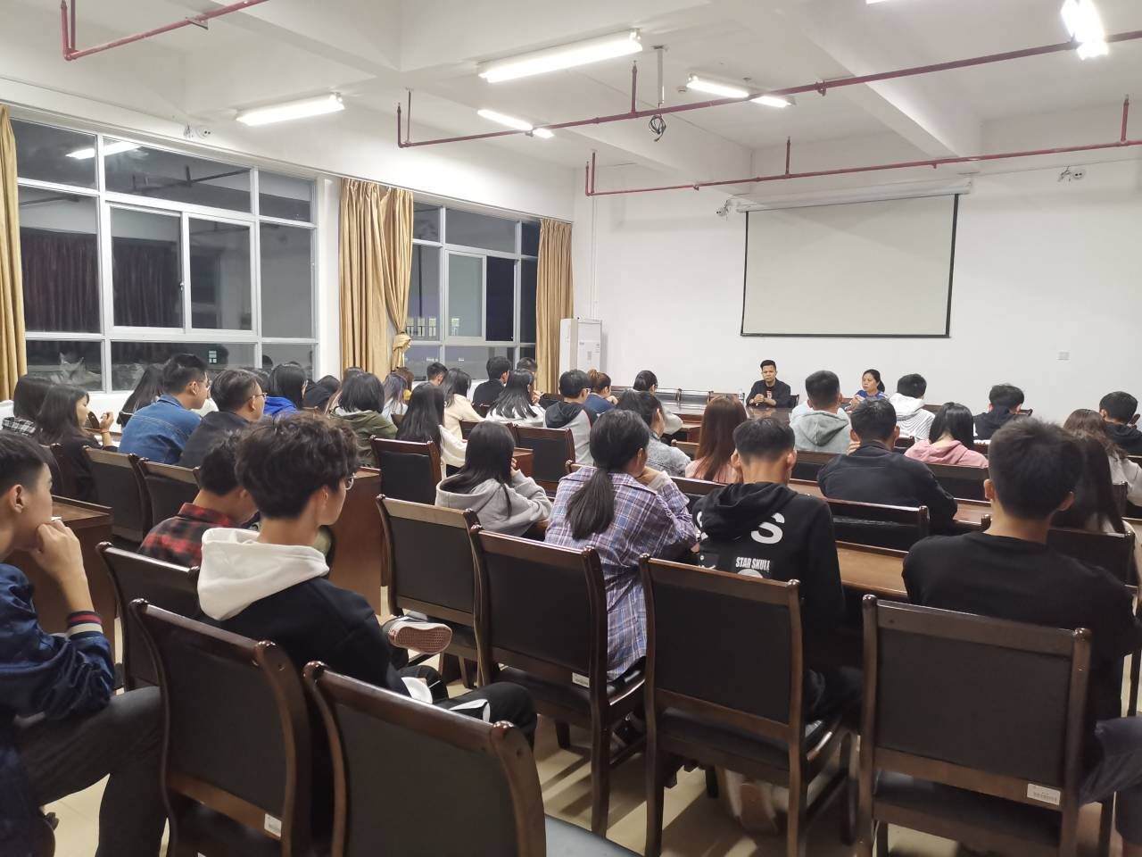 20191029日晚八时许,林学系五十余名学生在实训一四楼会议室中迎来了厦门理源(远东)集团副总裁助理许威扬。本次林校之行许威扬既是作为企业代表先来林学系商讨校企合作事宜,又作为16届毕业生返校与校友进行交流。当天参加交流会的还有林学系学工组组长徐洪老师、团总支书记丁灵妍老师。