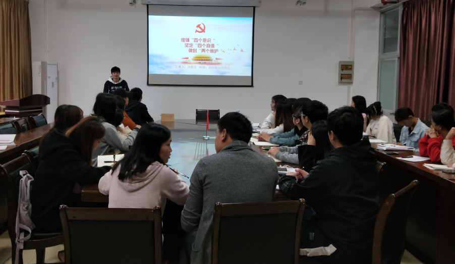此次学习研讨会由陈明峰老师领学,预备党员沈程文、李丹萍和陈冬敏同学以“增强“四个意识”、坚定“四个自信”、做到“两个维护”为主题进学习分享。
