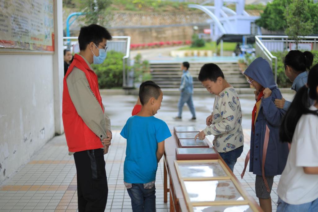 志愿者们在向小朋友介绍昆虫标本时,透过那玻璃盒子,那些形态各异,色彩斑斓的昆虫标本瞬间吸引了小朋友的眼球!他们好奇的对标本指指点点,眼里透着惊喜的光,还时不时提出一些疑惑,讲解的志愿者也是不厌其烦的,生动有趣的答疑解惑。