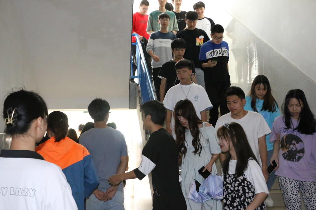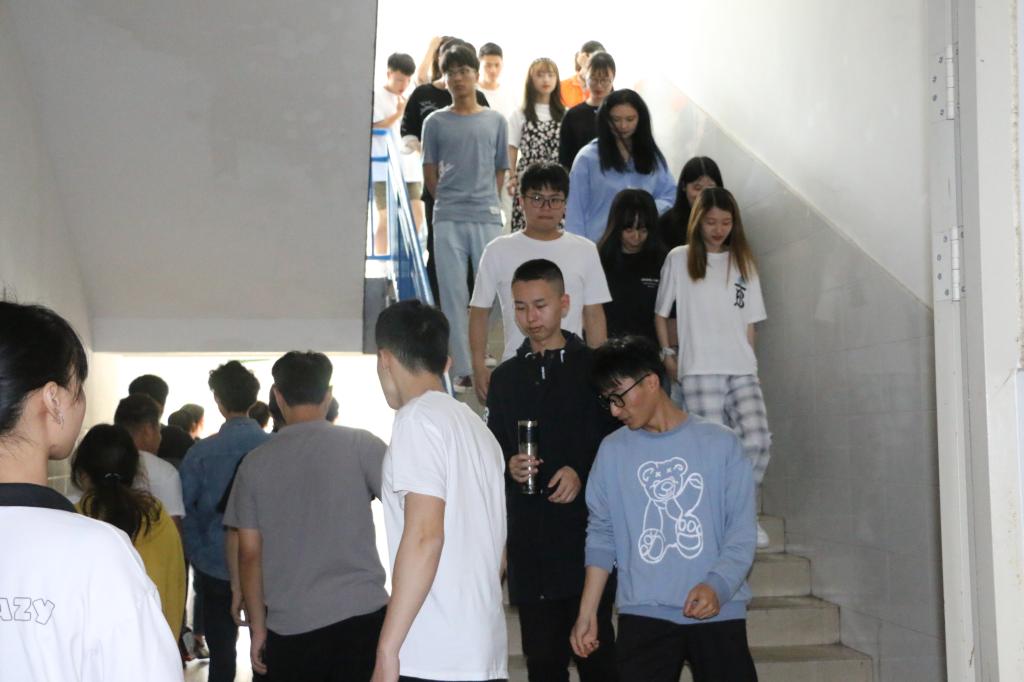 13:30分,随着警报的哨声响起,同学们立刻按照演练方案做出反应。“大家不要慌,不要推挤,当心脚下的阶梯!”同学们在工作人员的积极组织与引导下,快速地捂住口鼻,井然有序地逃离至空旷的位置,然后工作人员清点班级人数,全体同学安全逃离火灾演练现场。整个演练过程有序、迅速,同学们应对方法正确,无意外事故发生。