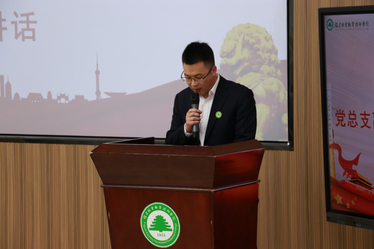 院团委副书记雷栩艺老师为大会致辞,向大会的召开表示热烈的祝贺,并向林学系广大青年朋友致以诚挚的问候。他提出今后在团学工作上,要对青年学生从思想引领、力量凝聚、成长服务、组织覆盖四个方面进行全方位、深层次的强化。雷栩艺老师表示,全面学习把握落实党的二十大精神,奋力夺取全面建设社会主义现代化国家新胜利。当前学院正处于创建福建省双高院校的关键时期,并且今年是建校七十年的关键之年,在新的机遇和挑战面前,同学们重任在肩、责无旁贷。希望同学们在挑战面前敢于担当、在机遇面前勇于进取,团结带领全系广大青年学生在新的征程中作出新的贡献。