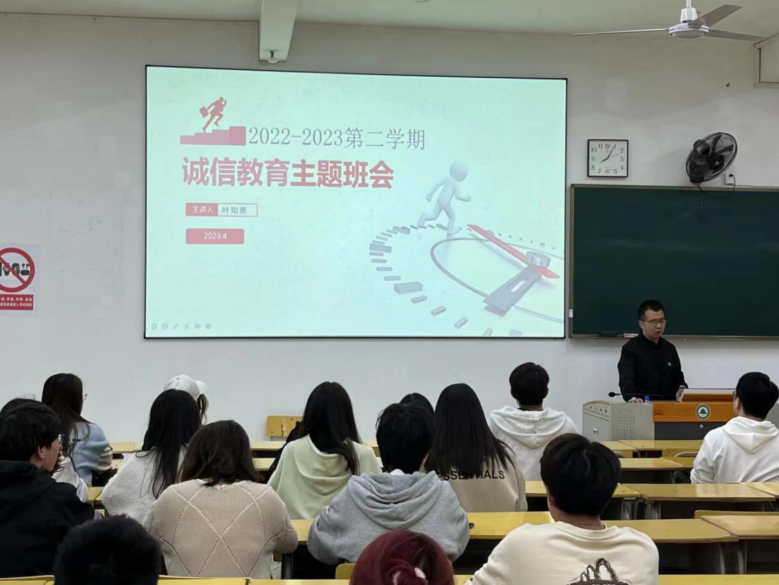 吴佳颖老师、叶知勇老师从同学们的日常生活中所能做到的诚信小事讲起,鼓励并号召同学们诚信考试、诚信申请奖助学金、诚信上网、诚信就业,激励同学们时刻讲诚信,用一言一行践行诚信。