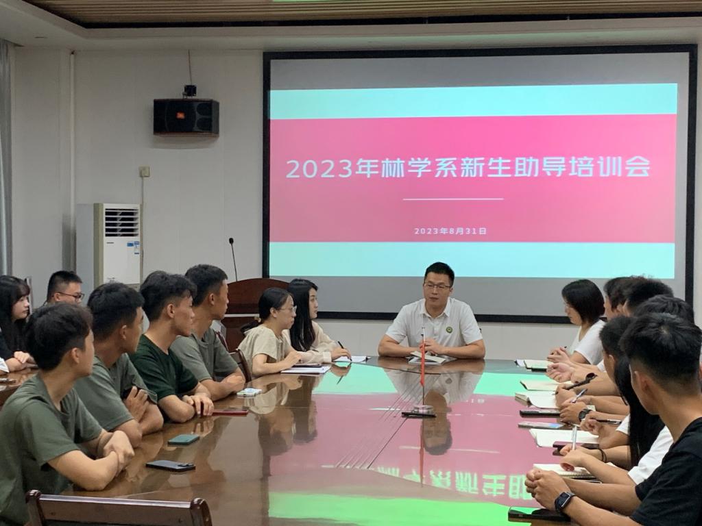 8月31日晚,林学系召开2023级新生助导培训会。林学系党总支书记傅成杰通过分享自己与助导之间的故事,让同学们深深的认识到助导的重要性。并对助导提了三点要求:一要认真履行责任,增强内心的责任感;二要品学兼优,作风正派,公平公正开展工作,从大局出发,以班级整体利益为主;三要不断提升自身的能力建设,更快适应新生助导的身份,认真完成每一项工作,助力我系迎新工作顺利完成。