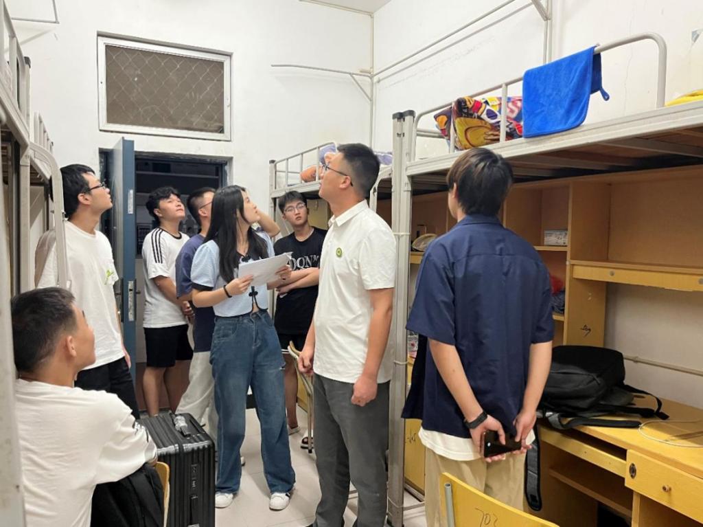 八月终,九月启,又是一年迎新季。为进一步了解林学系2023级新生入校第一天的情况,帮助新生尽快适应大学生活,2023年9月8日晚19:30,院党委委员李肇锋副院长、林学系领导班子成员及新生辅导员共同走访2023级新生宿舍,了解他们对学校的初印象及适应情况,向他们送去暖心的关怀和问候。