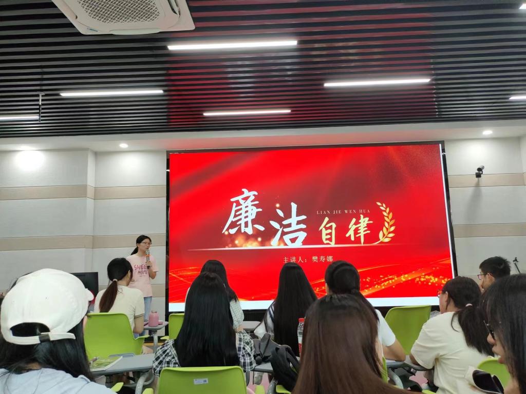 人人讲自律,事事为廉洁,通过辅导员樊寿娜老师在主题班会上语重心长的讲解与叮嘱,进一步提高了同学们的个人素养,清廉自爱品质,为同学们能在今后生活,成为一个正直的,有修养的,有品行的社会栋梁,打下了坚实基础。