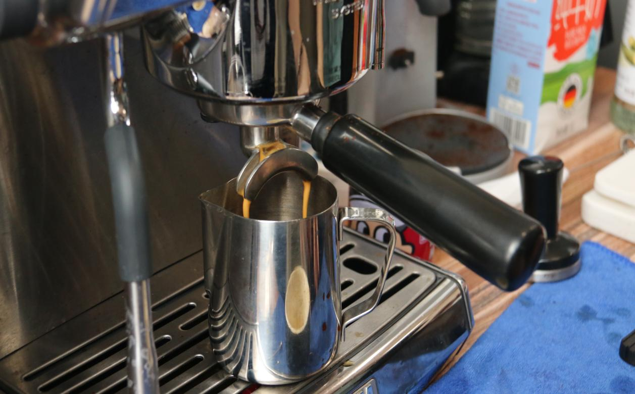 首先将牛奶加入杯子的八分满,再放入适量冰块。将咖啡豆研磨成咖啡粉,取粉称量后放入器具中进行萃取,萃取后的浓缩咖啡液与杯子中的牛奶进行融合。这样一杯香醇冰拿铁就制作成功了。同时也可以根据个人需求制作热拿铁和焦糖玛奇朵。