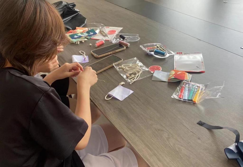 答完题过后前往香包制作点领取材料后,围坐在一起,桌子上摆满了五颜六色的布料、香料和缝纫工具。工作人员向同学们详细讲解了香包的制作步骤和技巧,同学们也迫不及待地拿起材料,开始动手制作。有的选择了鲜艳的红色布料,寓意着节日的喜庆;有的则偏爱淡雅的紫色,显得清新脱俗。大家根据自己的喜好,挑选布料、裁剪形状、填充香料,一针一线地缝制着属于自己的香包。
