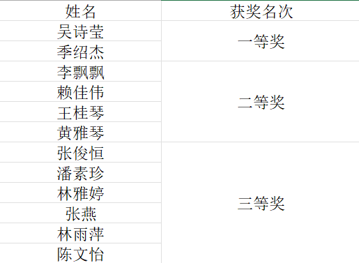 以下是此次比赛的获奖名单,恭喜以下同学!