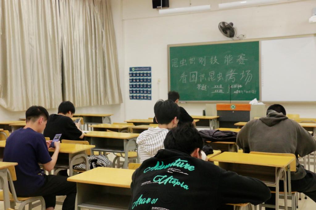 笔试结束后,来到第二个环节看图识昆虫,本环节为线上考试,同学们需在半小时之内完成20张昆虫图片的识别,同时在手机上填写相应答案。同学们聚精会神,十分认真对待这次考试,初赛结束后取前十四名进入决赛。