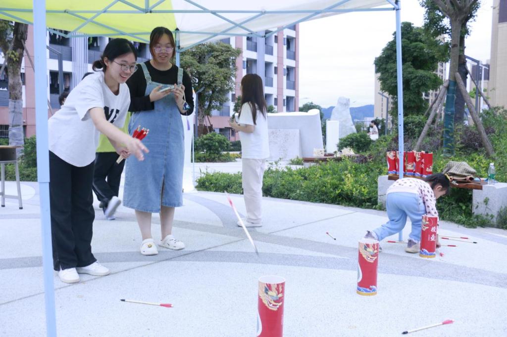 本次活动分为点朱砂、沐兰汤、投壶、猜灯谜、戴五彩绳、制香包、放河灯六个体验传统民俗的活动,传统乐趣不断,共度欢乐节日!接下来,请同学们一起来体验这份传统与乐趣的结合: