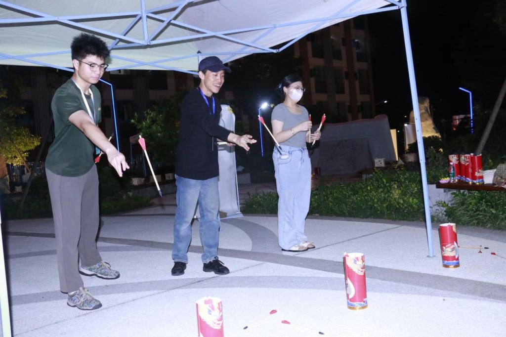 投壶比赛:投壶作为一种传统的中国体育活动,不仅具有锻炼身体、弘扬传统文化的意义,同时也是一种有趣的民间游戏,能够给人们带来乐趣和愉悦,同学们一起参与投壶比赛,体验竞技乐趣,共同追逐胜利!