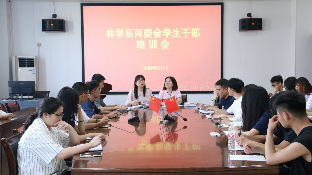 为进一步加强学生干部队伍建设,提升学生干部的综合素质与领导能力,促进学生工作的有效开展。林学系于2024年9月1日上午,在林学楼会议室召开林学系两委会学生干部培训会。会议由林学系学生科科长兼团总支书记马艳红老师主持,林学系辅导员郑立娜以及学生干部负责人参会。