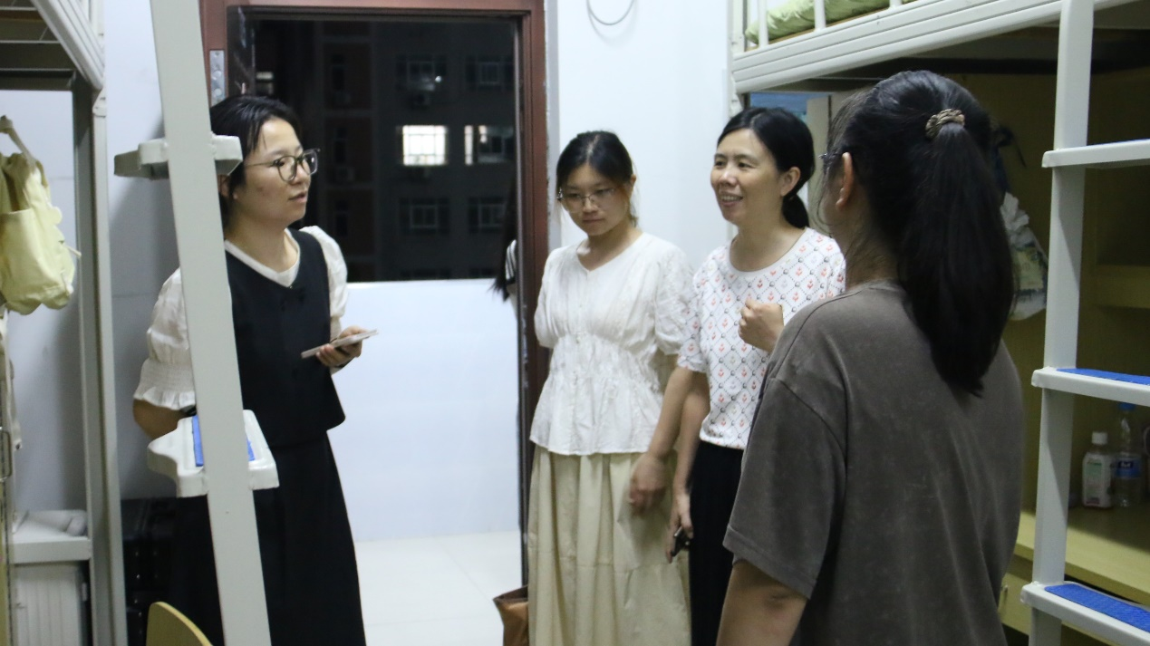 在走访的过程中,林学系党总支书记傅成杰与同学们进行亲切交谈,深入了解他们的基本情况,耐心询问学生的诉求,叮嘱同学们要与室友相互尊重、相互包容。此外,还重点强调了交通安全,防范网络诈骗等安全问题。