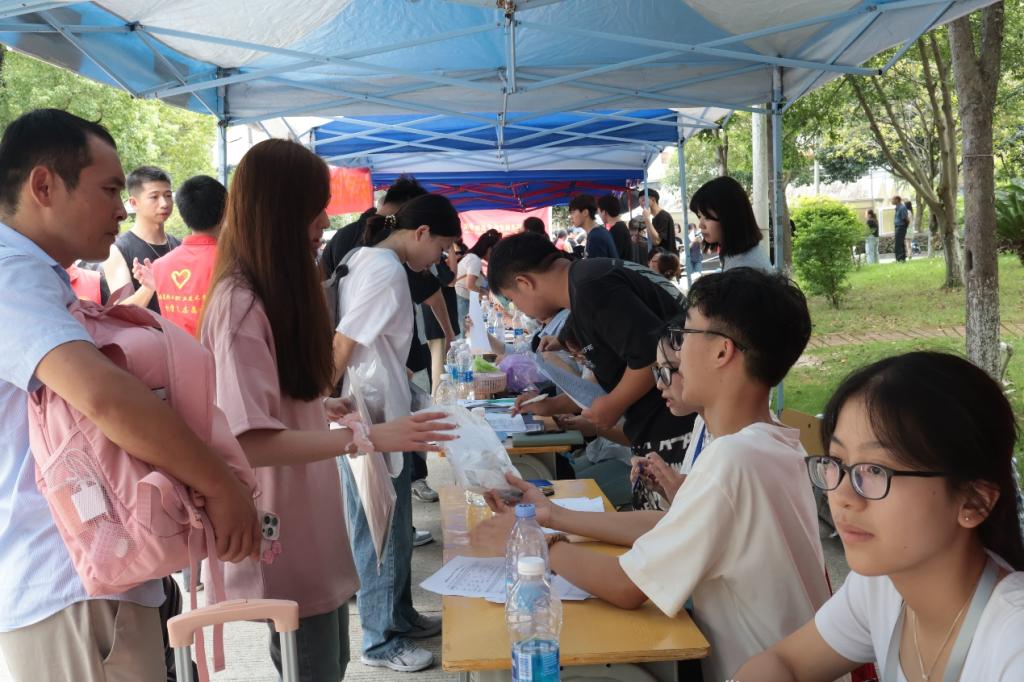 萌新们进入校门后便是迎新队伍的第一站,学长学姐和老师们在此地等待着新生的到来,开启萌新们在林职院的第一章。林学系的志愿者引导着新生进入校园抵达我们的注册处,帮助新生们完成入学注册并领取报到单。并引领着新生前往我们的大本营。