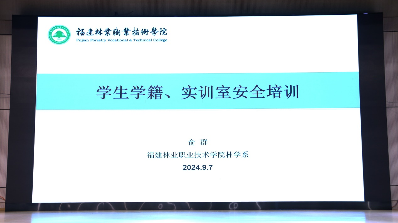 随后,林学系教务科科长俞群老师通过生动详实的讲解,向2024级新生全面解读了学籍管理规定,包括休学、退学、考勤、转专业等,确保每位新生对学校政策有清晰认知。紧接着俞老师给同学们进行了实验室安全教育,强调了实验设备的正确使用和化学药品管理规定等,有效提升了新生的安全意识,为同学们开启安全、充实的大学生活奠定了坚实基础。