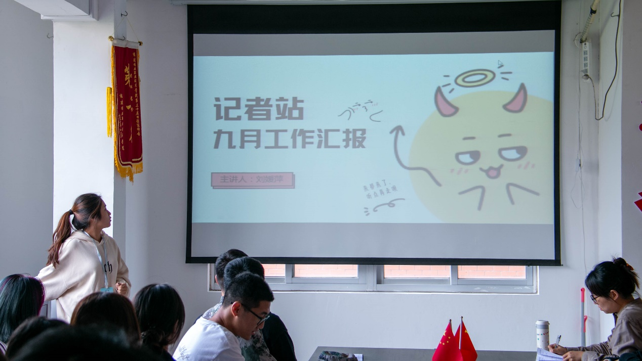 汇报结束后,郑立娜老师对九月份开展的新生入学教育、演讲比赛、团日活动等的工作给予了充分的肯定,同时也对存在的不足进行了批评指正,并鼓励学生干部在今后勇于挑战,积极开展更多大家喜闻乐见,形式多样的各种活动。