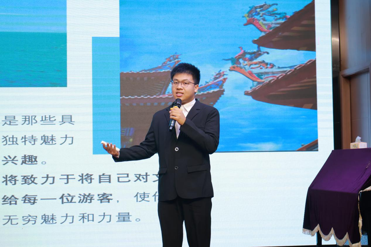 本次比赛分为两个环节,第一个环节选手陈述个人求职意向和职业准 备情况,展示通用素质与岗位能力。第二个环节评委提出真实工作场景中可能遇 到的问题,选手提出解决方案;评委结合选手陈述自由提问。八位晋级决赛的选手依次进行展示。在自我展示环节中,选手们用饱满的激情和精炼的语言讲述着自己的职业生涯规划,包括自我认知、职业生涯条件分析以及职业生涯目标,并配合PPT生动形象地向评委和观众们分析自我的优势劣势、现状和计划的可行性,表现出他们对实现职业生涯规划目标的决心。