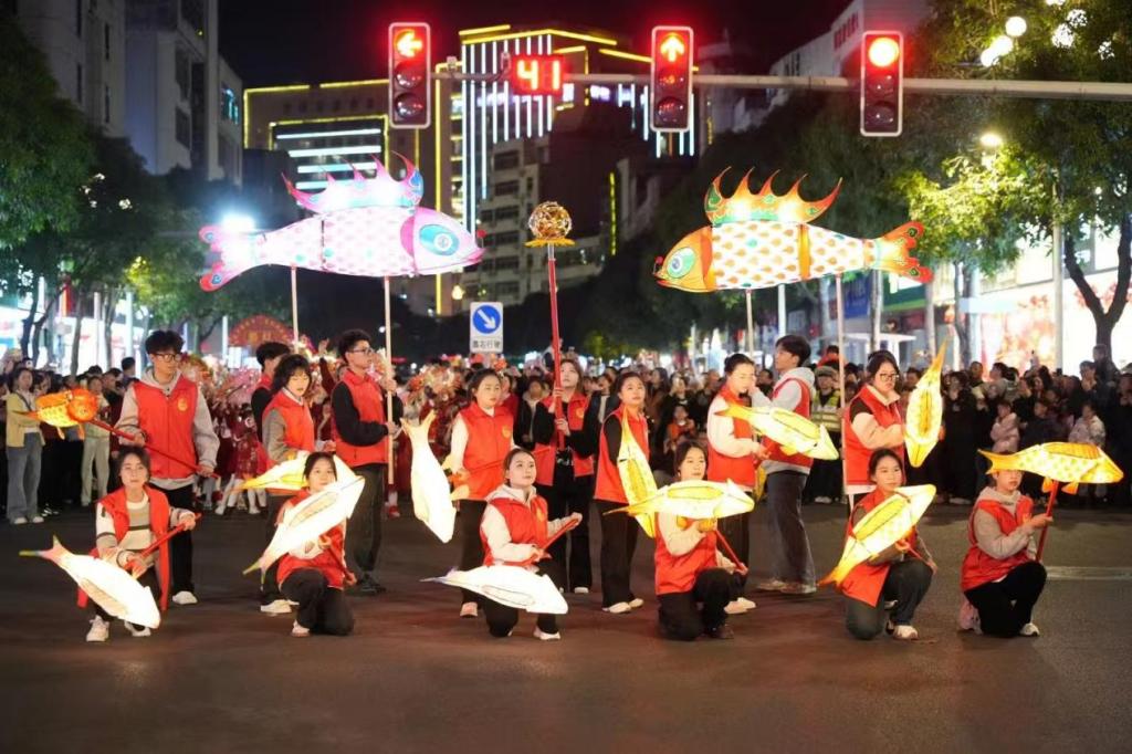 寒假伊始,廖营川便满怀热情地返回家乡武平县,投身于“武平客家年·百灯闹新春”巡游巡演志愿服务活动中。在这场盛大的文化盛宴中,他担任渔灯组组长,组织团队、分配任务,参与排练,与团队成员共同磨合每一个动作,确保表演的完美呈现。他的身影在璀璨的灯光下跃动,手中的渔灯仿佛承载着他对客家文化的热爱与传承。