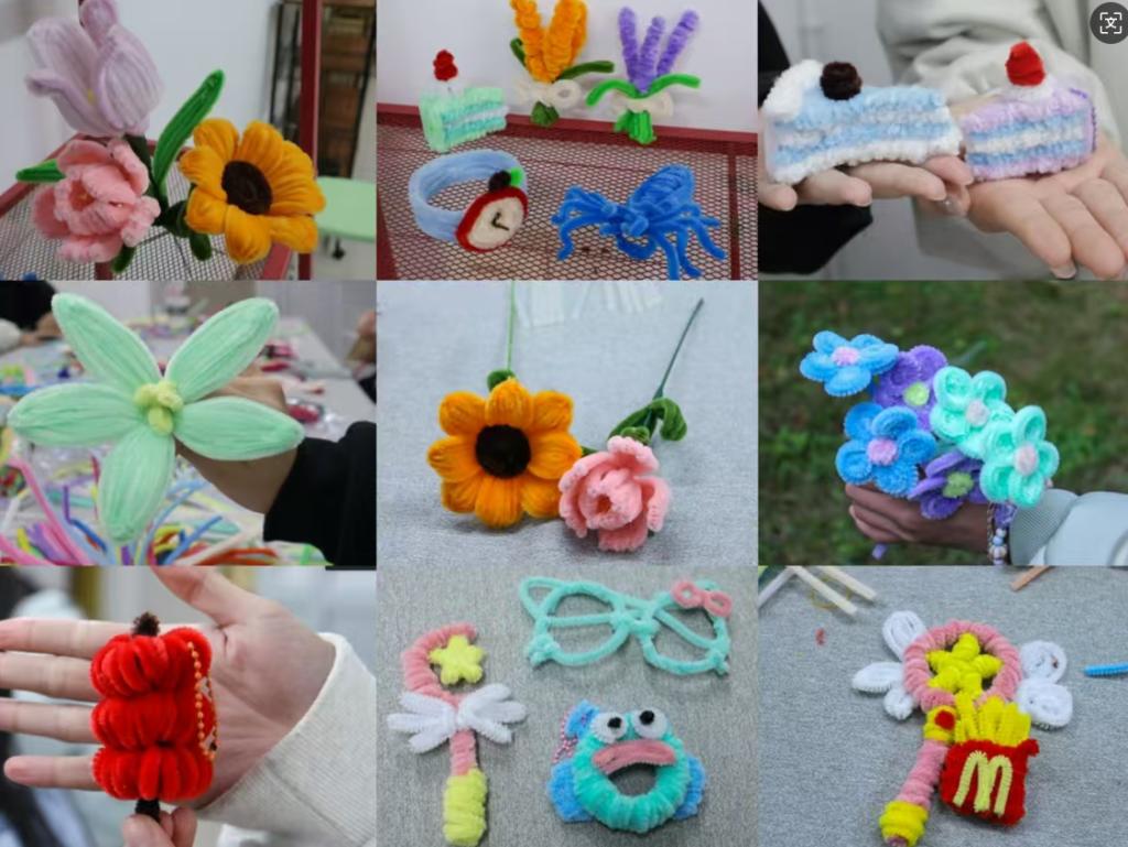 随着时间的推移,一朵朵形态各异、色彩艳丽的扭扭棒花朵在大家的巧手下逐渐成型,再经过精心的组合搭配,变成了一束束精美的花艺作品。学生们看着自己的劳动成果,脸上洋溢着满满的成就感和喜悦。