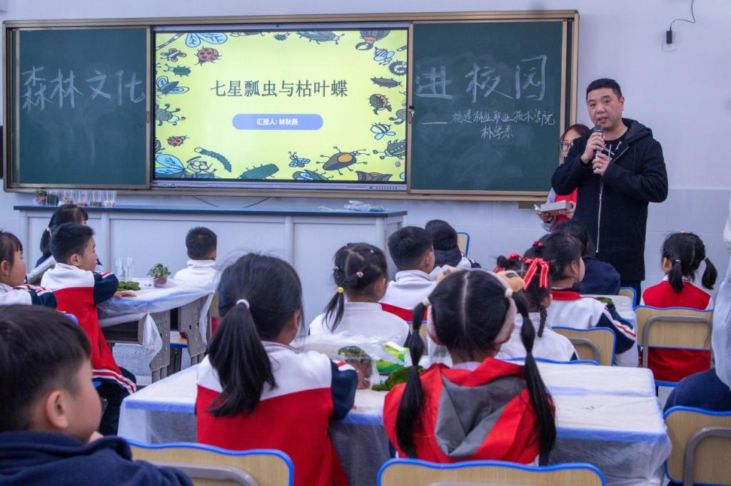 森林是大自然馈赠的绿色宝库,承载着人类悠久的文化记忆。校园作为知识传播与人才培养的关键场所,肩负着将生态文明理念融入教育体系的重要责任。为弘扬雷锋精神,践行志愿服务理念,林学系团总支志愿部携手“小林员”志愿服务队,联合林学系昆虫协会、草木缘协会于2025年3月20日赴南平剑津小学开展“森林文化进校园,生态知识启童蒙”主题森林文化科普志愿活动,传播生态文明理念,助力森林文化传承。