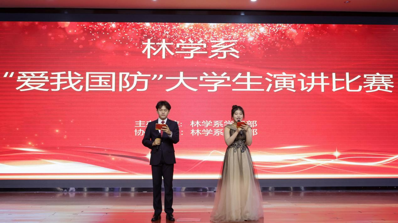 为学习贯彻习近平强军思想、普及国防知识、培育国防观念、增强国防意识、开展国防教育、厚植家国情怀,着力培养广大学生热爱祖国、热爱家乡、热爱国防的情感,激发大学生赓续红色血脉、热爱人民军队、尊重崇尚英雄、矢志报国、强国兴军的热情。林学系学习部与林学系文艺部于2025年5月19日在江南礼堂顺利开展了“爱我国防”大学生演讲大赛。