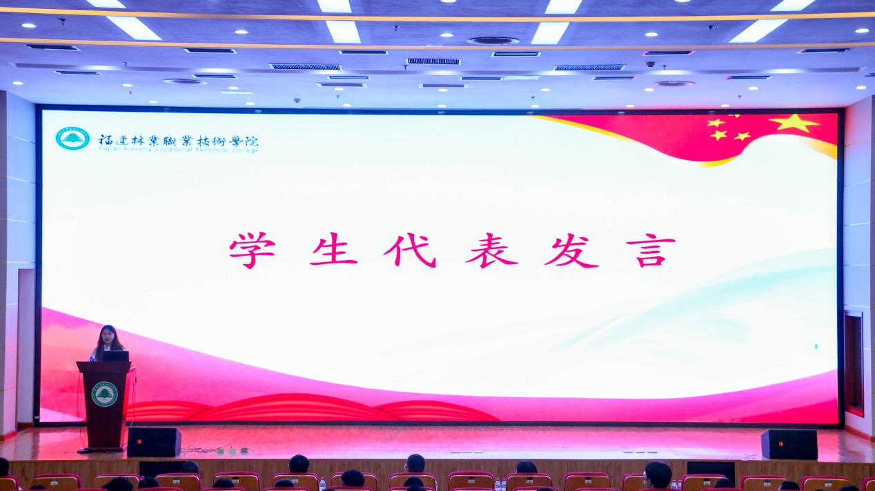 第三项议程由我系学生代表林偲怡同学发言。她分享了自己从初次参赛的紧张到后来从容应对的心路历程,用"坚定信念、迎难而上、持之以恒"三个关键词概括了参赛心得。最后她鼓励同学们珍惜此次机会,勇于挑战自我,号召同学们以青春奋进,以技能筑梦。