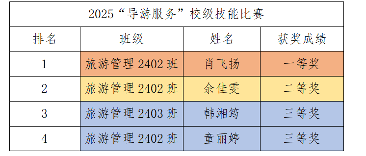 至此,2025年林学系“技能文化活动月”导游服务赛项圆满结束!经过各位选手激烈的角逐,以下是此次导游技能大赛获奖人员名单。