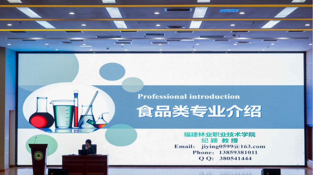 会上,林学系食品教研室主任纪颖教授从食品行业的发展趋势、食品类专业的知识体系以及未来就业的方向三个维度展开讲解。纪颖教授,作为高级工程师、省级专业带头人与省级科技特派员,她长期深耕食品分析与检测、农产品贮藏与保鲜等方向,技术成果为产业质量把控提供了关键支撑。