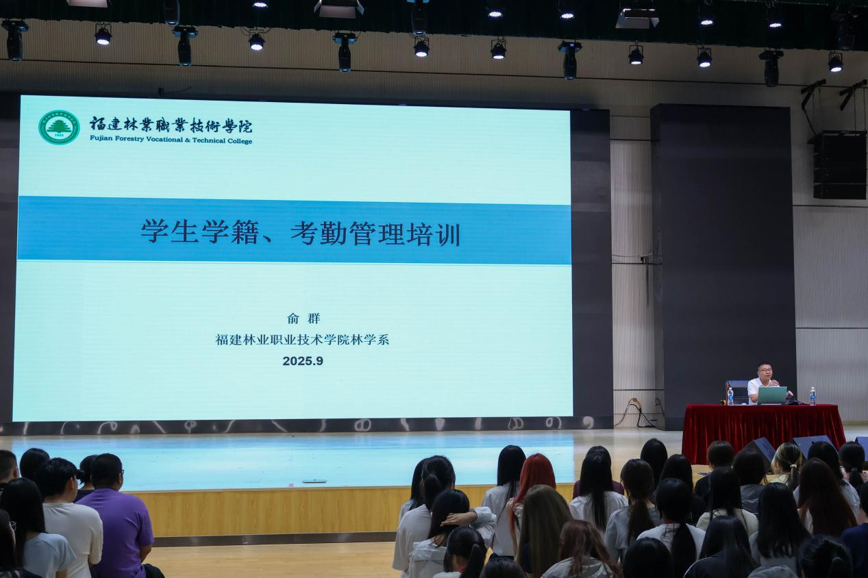 带着初秋的朝气,怀着对大学生活的期待,各位新同学刚刚踏入校园,开启人生全新的旅程。为了帮大家更快褪去青涩、适应校园节奏,2025年9月7日19:00,林学系开展第一场新生入学教育活动。参加本次新生入学教育大会的老师有林学系党总支书记傅成杰老师、林学系副主任余燕华老师、教务科科长俞群老师、林学系各班新生辅导员以及林学系2025级大一新生。本次大会由林学系专职辅导员、学生科科长兼团总支书记(代)郑立娜老师主持。