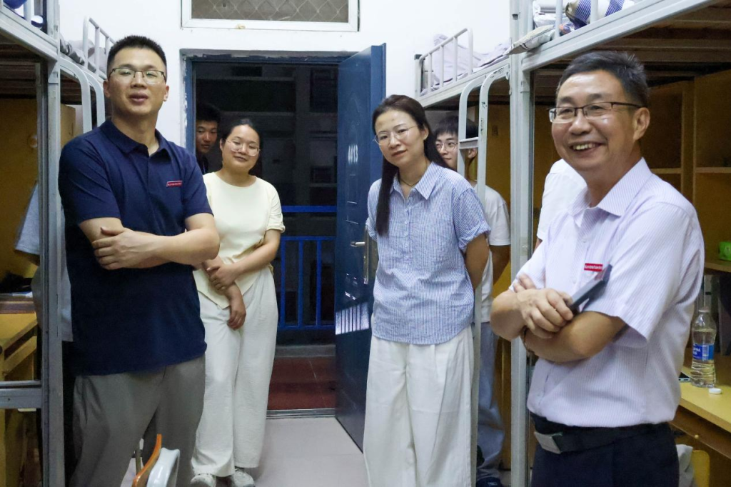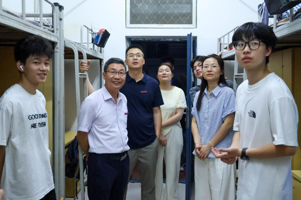 李肇锋副院长与系领导们轻步走进新生宿舍,每到一间宿舍,都主动与新生亲切问候,详细询问同学们从家乡来校的行程是否顺利、行李物品是否安置妥当、住宿环境是否习惯、生活需求是否得到满足。“宿舍空调制冷效果怎么样?”“和室友们相处得还融洽吗?”“有任何问题随时找辅导员或系里沟通,我们会尽力帮大家解决。”一句句关切的询问、一声声温暖的叮嘱,瞬间拉近了与新生的距离,让初入校园的同学们感受到了家一般的温暖。