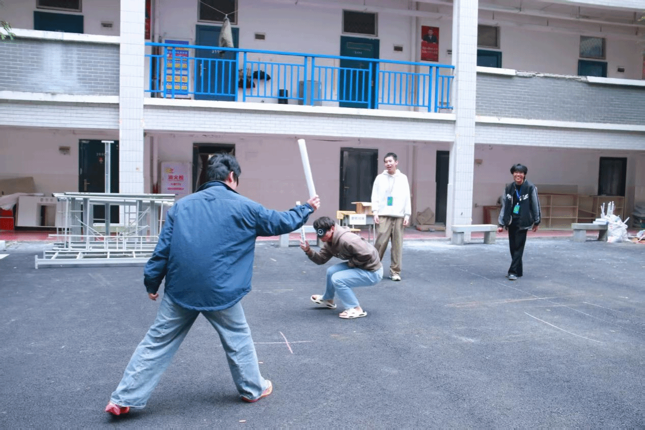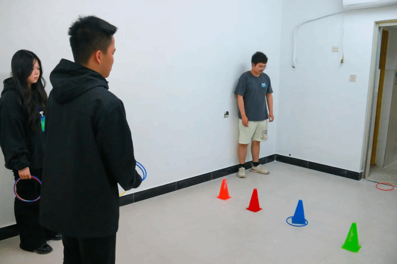 蒙眼打人游戏将活动推向高潮,四名玩家分成两组,两名“打手”戴上眼罩,由“指挥官”指挥。三米的距离,自上而下的击打,每一次成功都赢得满堂彩。获胜的“指挥官”和“打手”们脸上洋溢着笑容,手中的盖章是对他们团队默契的最好证明。