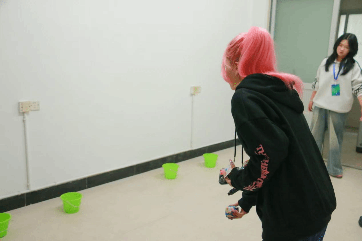 活动中,同学们热情高涨,积极参与各项趣味游戏。欢乐套圈游戏里,同学们站在指定线外,手握特制套圈,瞄准五个三角桩。五个圈,三个目标,每一次成功套中都伴随着欢呼。投掷沙包进桶更是考验精准度,五个沙包,三个成功,同学们全神贯注,每一次投掷都凝聚着期待与努力。