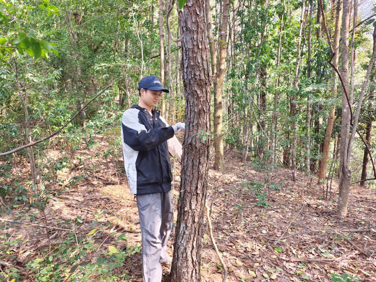 林学系积极统筹部署,从各班级中选拔专业素养扎实、责任意识突出的青年团员组建实践团队,同时配备了手持激光雷达扫描仪、激光雷达无人机等先进林业调查设备。在林场现场,团队成员各司其职、协同配合:传统调查小组的成员手持测径尺、测高仪等常规工具,精准测量林木胸径、树高;技术创新小组则灵活运用手持激光雷达扫描仪,对单株树木的三维结构进行快速扫描建模,获取树干弯曲度、树冠体积等精细化数据,还操控激光雷达无人机对整片伐区进行低空航测,实现了对伐区地形地貌、林木分布密度、植被覆盖度的大范围、高精度勘测,再将两类设备采集到的数据进行整合比对。大家以严谨的态度、扎实的专业能力和创新的技术思维完成各项调查任务,在实践中深化了对林业生产流程的认知,真切体会到林业工作者守护生态的坚守与担当,也直观感受到科技赋能林业调查的高效与精准。