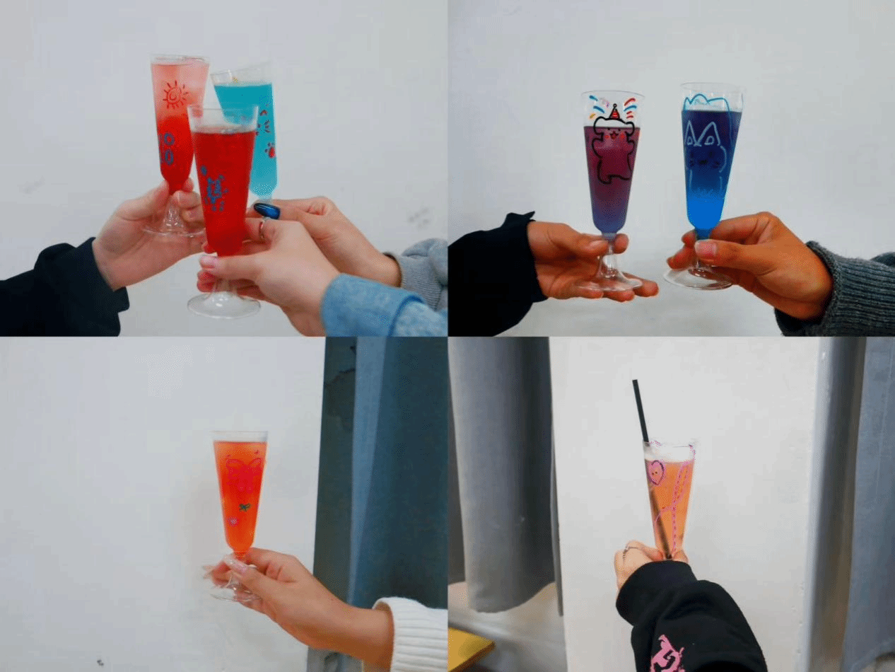 活动现场,同学们化身“创意设计师”与“调酒达人”,用颜料勾勒奇思妙想,用贴纸点缀个性态度,将普通酒杯设计制作成独一无二的专属藏品——从简约几何图形到萌趣卡通形象,从复古花纹到个性文字,每一个作品都藏着专属故事与巧思。