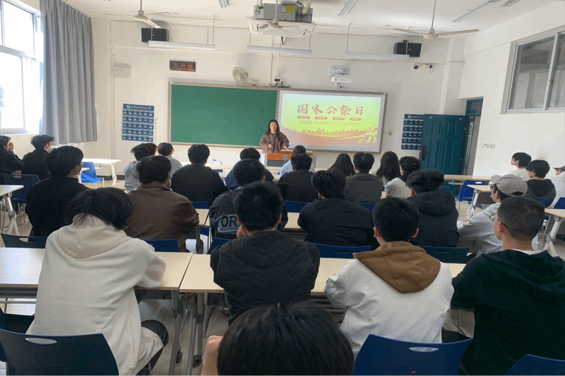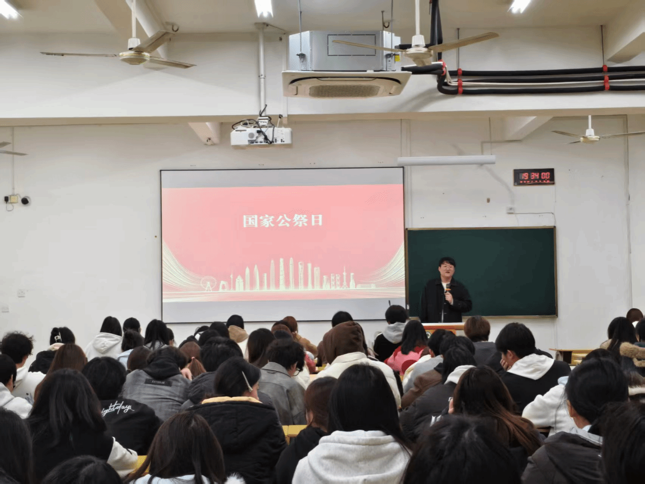 班会伊始,各班级辅导员通过播放国家公祭日相关纪录片、展示历史图片等形式,向同学们详细讲述了南京大屠杀的惨痛历史。一张张触目惊心的老照片、一段段沉重详实的文字记载,将同学们带回了那段山河破碎、生灵涂炭的岁月,让大家深刻认识到战争的残酷与和平的珍贵。辅导员着重强调了设立国家公祭日的重要意义,指出这不仅是对遇难同胞的深切缅怀,更是对历史的深刻铭记,对和平的坚定捍卫,旨在激励当代青年以史为鉴,肩负起民族复兴的重任。