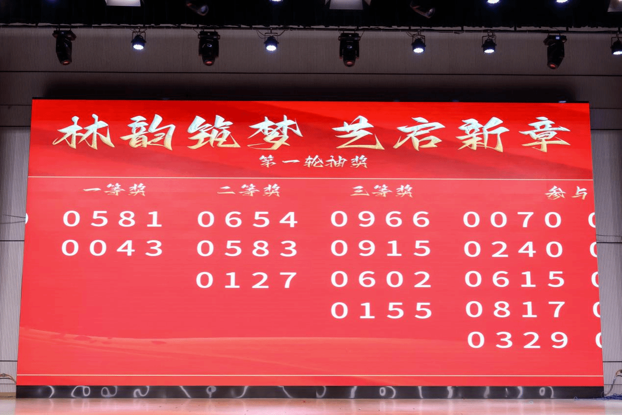 中场首次抽奖环节启动,大屏幕数字滚动,为新年的夜晚增添惊喜与期待。