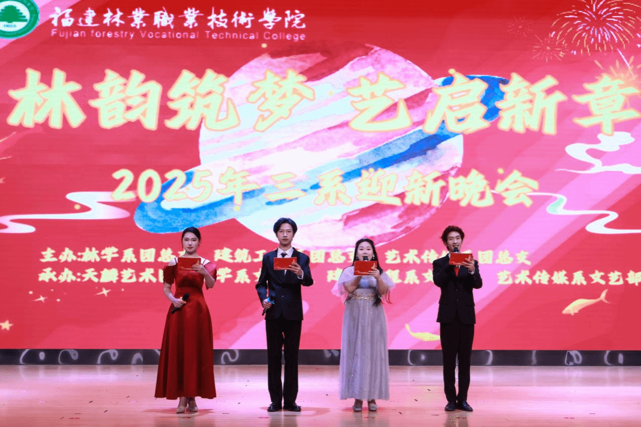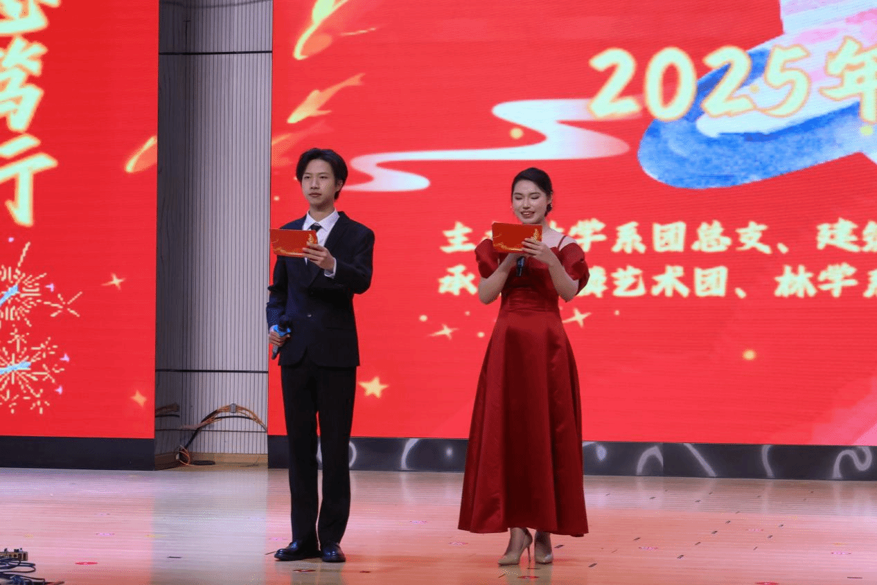 当冬日的暖阳揉碎成漫天霞光,当新年的钟声在期盼中悄然临近,2025年12月29日,林学系、艺术传媒系、建筑工程系携手奏响迎新序曲,一场以“林韵筑梦,艺启新章”为主题的迎新晚会如约而至。