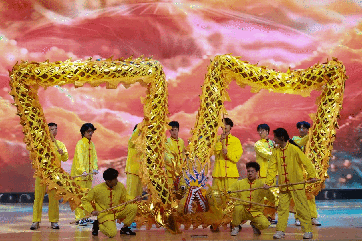 灵狮踏雪戏珠来,祥韵开篇贺新岁。晚会的序幕由建筑工程系舞龙舞狮队的《灵狮戏珠》拉开,金狮腾跃,气势磅礴,以传统民俗迎接新年。