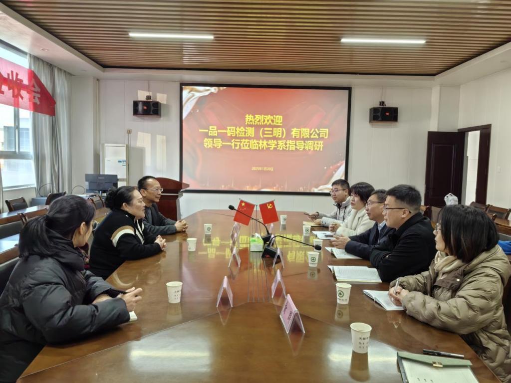 2025年1月20日,瑞得利(福建)检测技术有限公司总经理、厦门市检验检测认证协会秘书长丁沪闽与一品一码检测有限公司总经理杨开耀一行莅林学系参观交流指导。院党委委员、副院长李肇锋,林学系党总支书记傅成杰,林学系教务科科长俞群老师,林学系学生科科长兼团总支书记马艳红老师,以及林学系食品教研室主任纪颖教授、教师叶盛超老师出席座谈会。