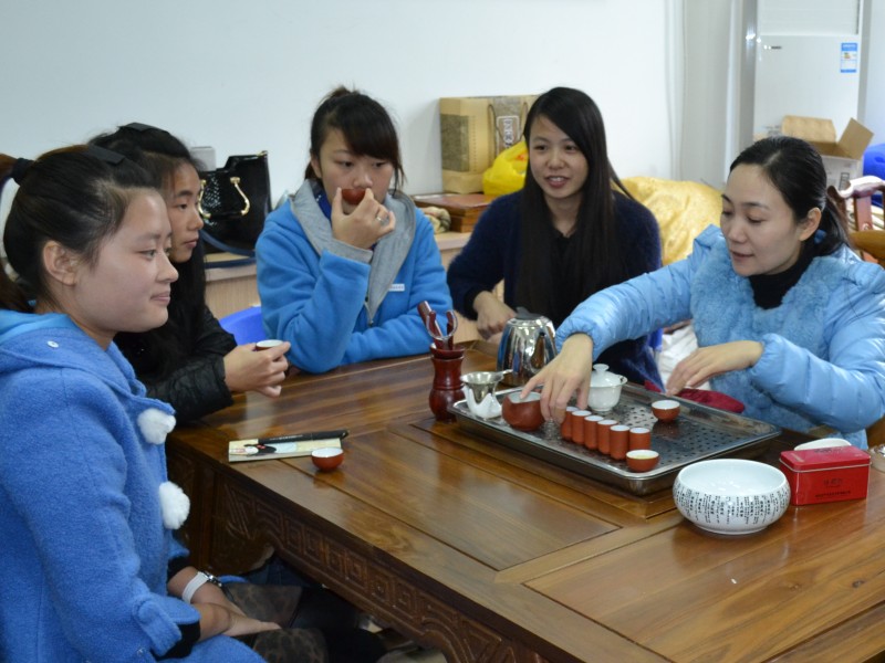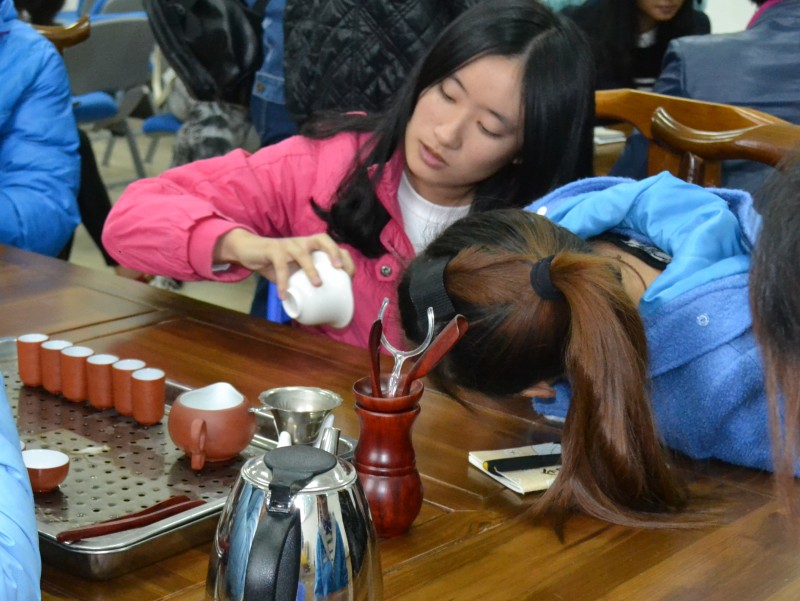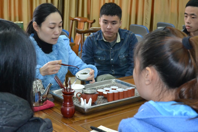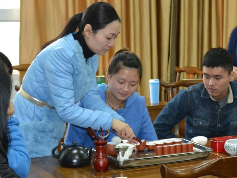为了提高学生动手操作能力和备战2015年福建省高职技能大赛中华茶艺项目,我系于12月9日邀请了南平“又一村茶艺居”的两位高级茶艺师为旅游管理专业的同学进行茶艺技能示范和培训。两位茶艺师给同学们介绍了茶叶的基础知识和行茶礼仪,现场展示了绿茶、乌龙茶、红茶的冲泡技法,并与同学们进行互动交流。茶艺师娴熟的冲泡手法和形象生动的讲解,激发了同学们学习茶艺的兴趣,对实践技能的提升起到很好的帮助。(文/陈元镇,图/钱叶会)