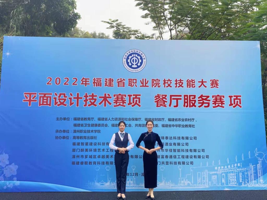 2021年12月18日至19日,由漳州职业技术学院承办的福建省职业院校技能大赛(高职组)“餐厅服务”赛项落下帷幕。来自全省21所高职院校的21支参赛队同台竞技(团体赛)。来自我系2020级旅游管理专业许诺、刘成琳2名同学艰苦备赛,顽强拼搏,在大赛中获得二等奖。