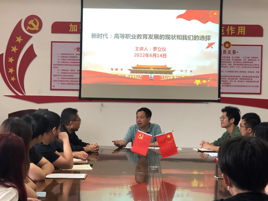 本次党课分两个部分,第一部分是“高等职业教育发展的现状”,罗立仪副院长从历史和时代两个维度,先是深刻阐释了新时代高等教育的重要战略地位和作用,而后叙述了当今校纪学风下的腐败气息,结合学院的发展现状以及所遇到的发展瓶颈展开讲解,强调高校在教学、育人和管理过程中,要围绕知识选择、知识传递、知识创新与知识应用这个中心梳理问题的各个方面,作出相应的改变,从而深入推进高等教育的高质量的发展。